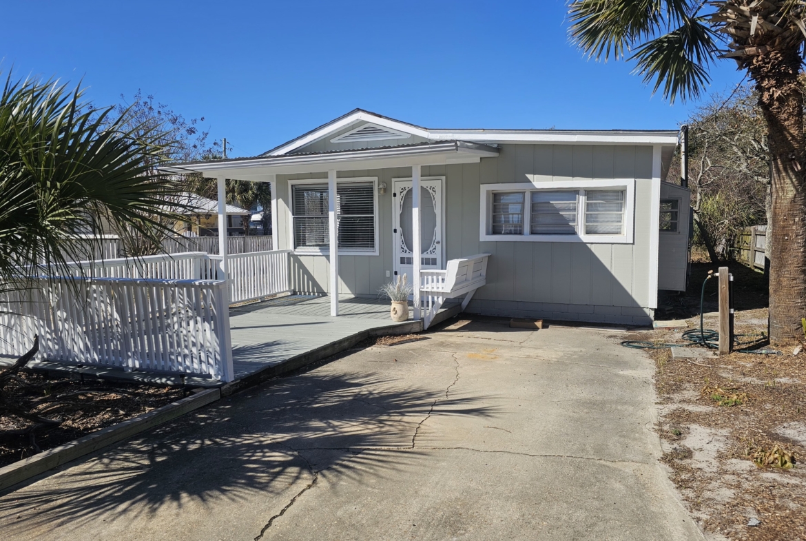 This 2 bedroom, 2 bathroom manufactured home offers easy, laid-back living just a short walk from the beach in Panama City Beach. The home features a simple, functional layout with two private bathrooms and just the right amount of space to feel cozy without being cramped. The second bedroom is accessed through the primary bedroom and does not include a closet. Perfect for long-term renters looking to enjoy coastal living year-round. Close to the beach, local restaurants, and everyday conveniences—come settle in and enjoy the beach lifestyle without the vacation crowds.