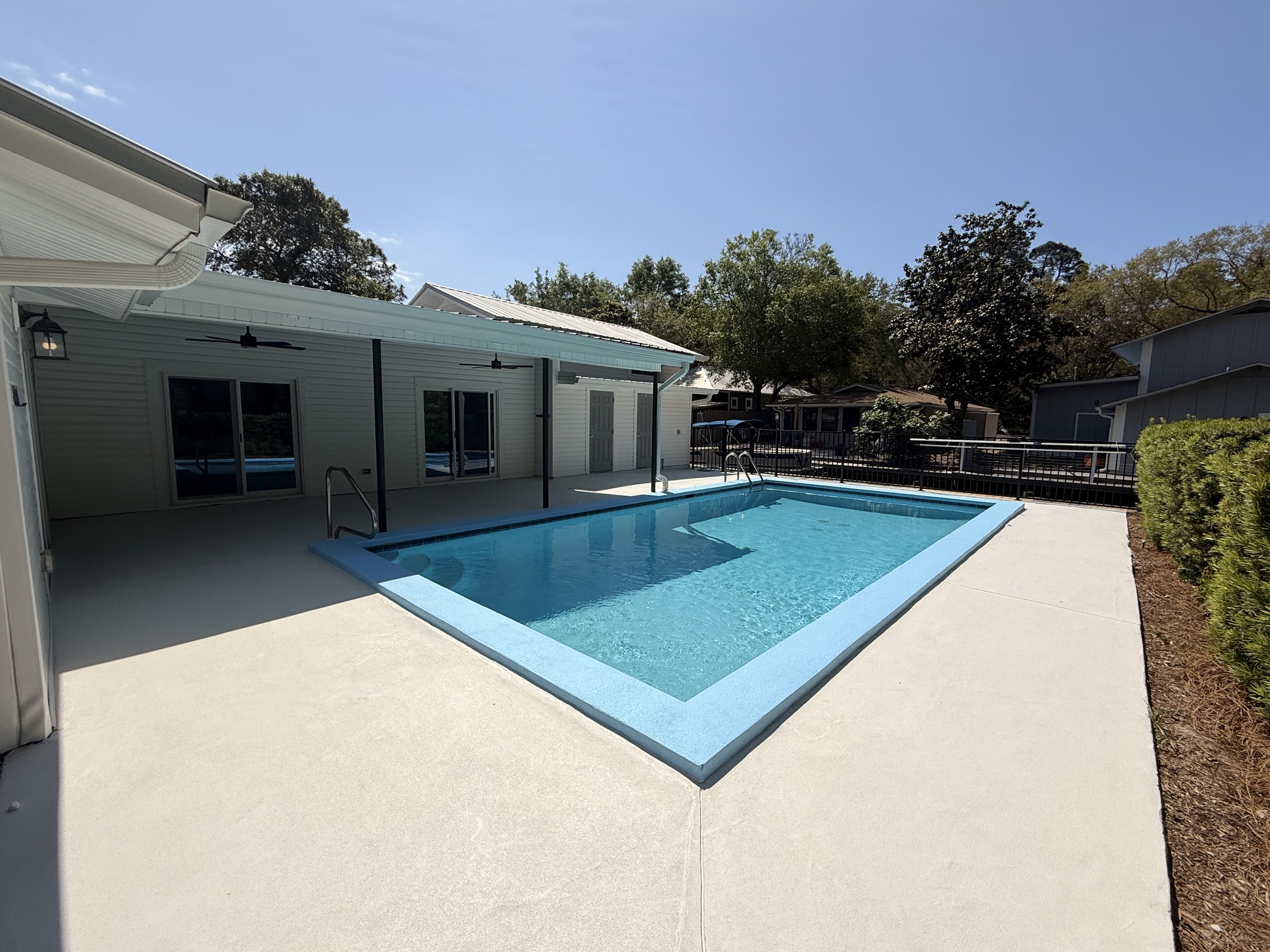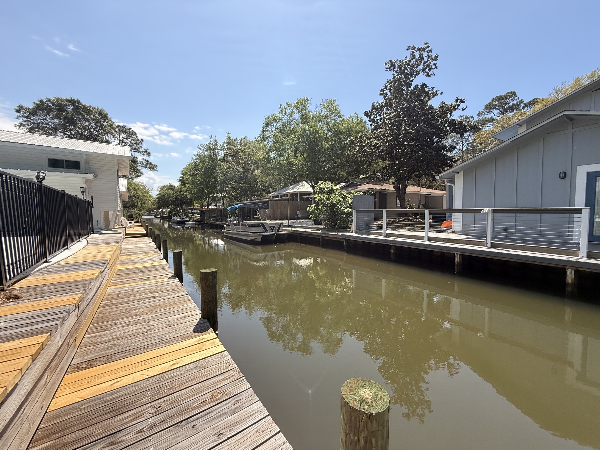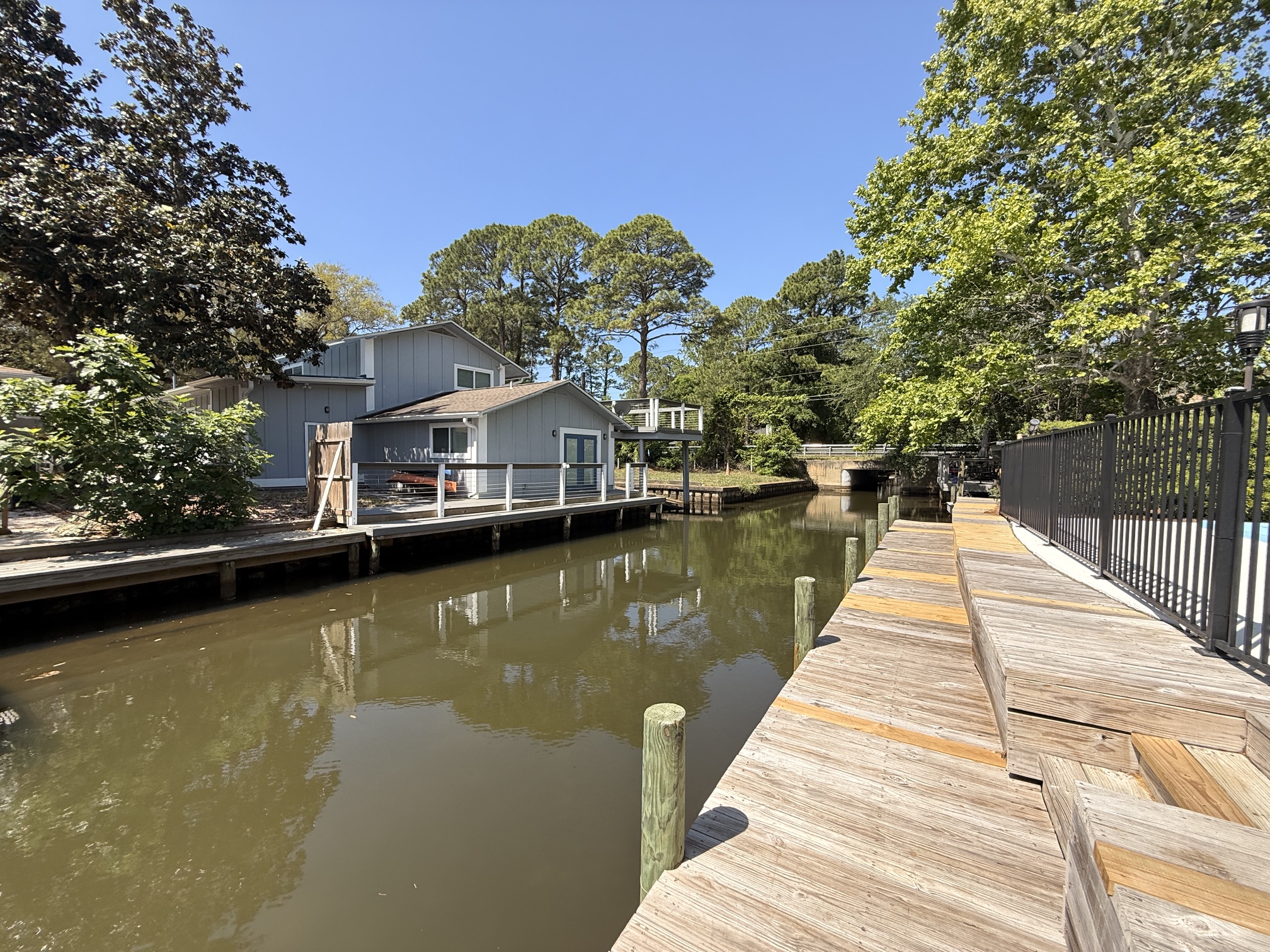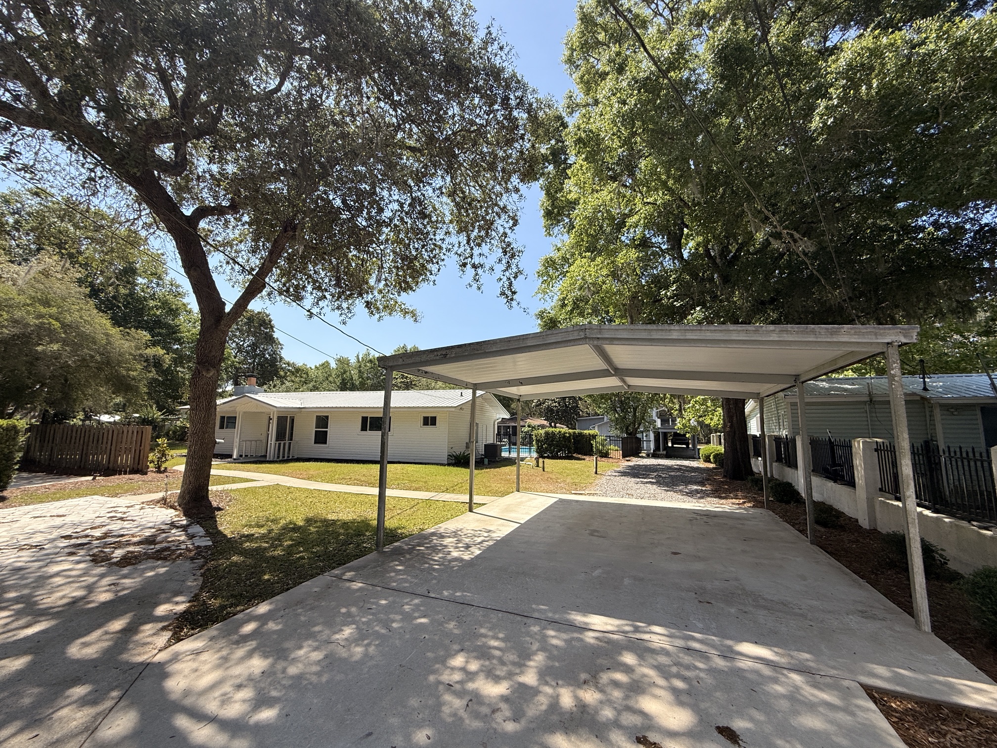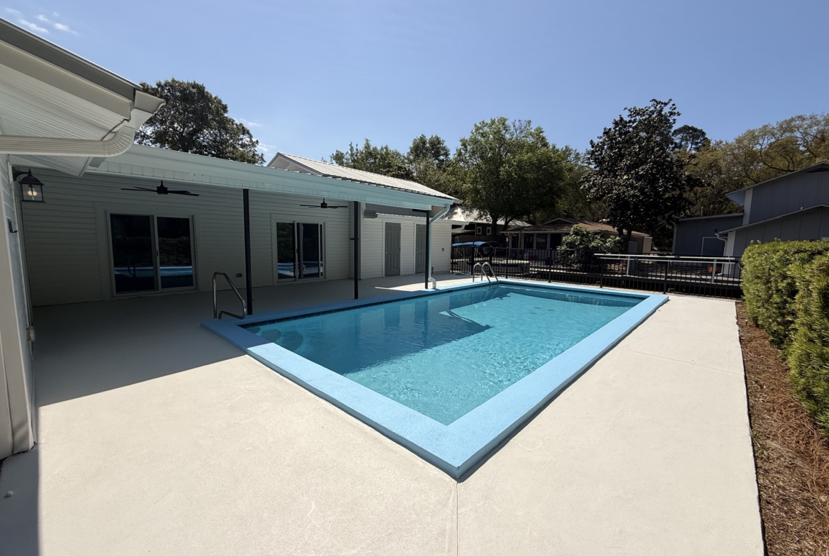 Unique canal water front home with 150 feet of water frontage. Canal leads 300 feet directly to Mack Bayou. Private boat launch will accommodate up to 17 or 18 ft boat. Covered boat house will accommodate kayak, SUP or canoe. 3 bedroom 2 bath with carport, fireplace, spacious living room, screened lanai overlooking wonderful outside private pool